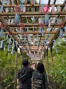 本日は男性、女性ともに11名様ずつの計22名様のご参加です。 《谷瀬の吊り橋》散策 十津川に架かる、長さ297.7㍍、高さ54㍍の谷瀬の吊り橋を男性陣から挑戦!朝からの雨も止み、快晴の中足元に注意しながら、渡って頂きました。 揺れがきつくなる所もありスリル満点!