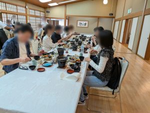 今回は男性女性各10名様の合計20名様でのツアー実施です。 《若狭フィッシャーマンズ・ワーフ》ご昼食 早目の到着建物2階食事会場へいどう日本海が一望できる会場にて若狭の食材を使った蘇洞門膳を男女向かい合わせのお席にお座り頂き美味しく召しあがって頂きました。 ゆっくりとして頂けるお時間もあり食後はデザートを食べられたりコーヒーをのまれたりと気になる方とお過ごし頂けました。 お土産もお買い求め頂きました。