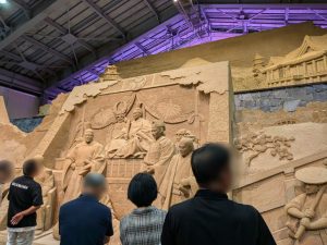 本日は男性12名様、女性12名様の計24名様でツアースタートです。 《鳥取砂丘》 見学・散策・リフトにて移動 日本海岸に広がる日本の代表的な海岸砂丘を6グループに分かれ頂き、砂丘センターより砂丘まで約5分の2人乗りリフトに乗り移動高さ47㍍の馬の背まで行かれたグループもありました。