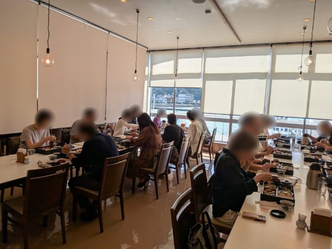 日本海が一望できる会場にて若狭の食材を使った蘇洞門膳を男女向かい合わせのお席にお座り頂き美味しく召しあがって頂きました。