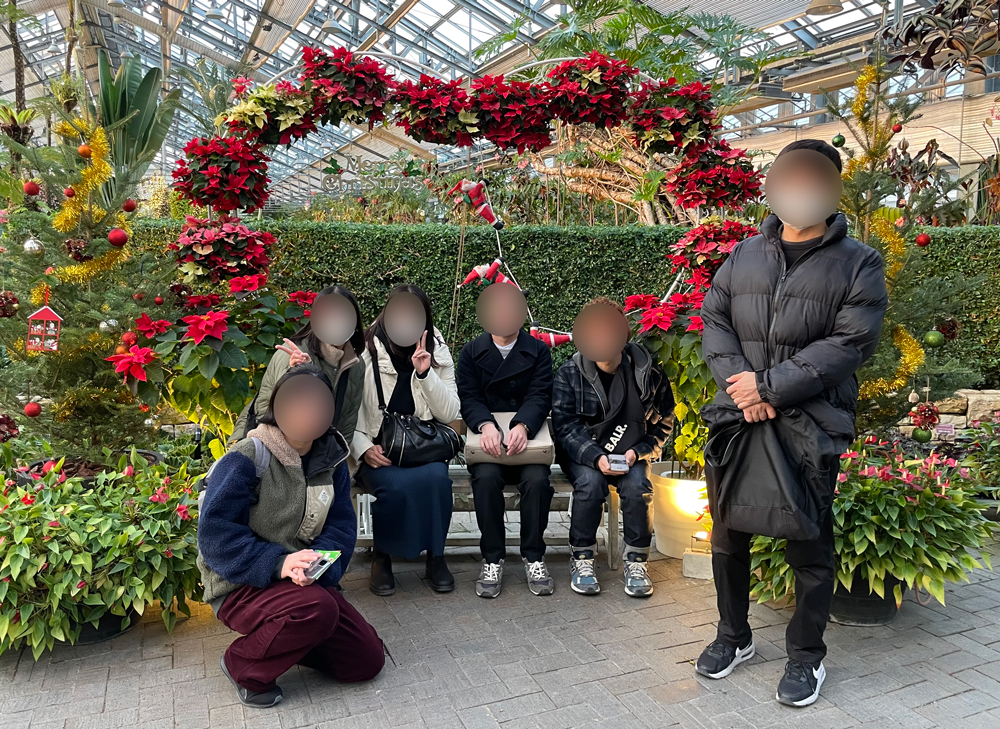 温室はベゴニアの花が咲きクリスマスの飾りがされ華やかな雰囲気でした。