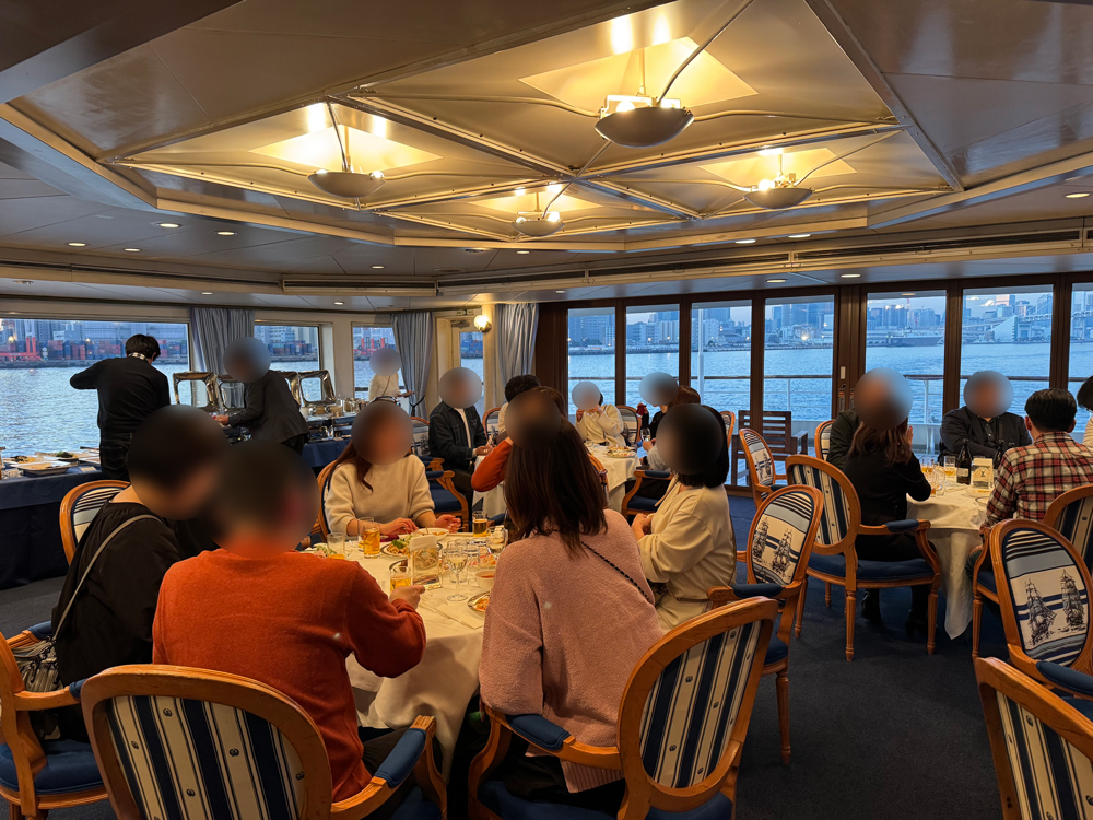 食事を一通り楽しんだ後はデッキに出て夜景をみたり、写真を撮ったり、思い思いの時間を過ごしました。男女関係なくみんなでワイワイと楽しい雰囲気で、あっという間の2時間でした。