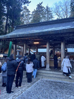 旅の締めくくりは、諏訪大社 上社で初詣。冬景色をたっぷり味わったあとに参拝すると、心がすっと整う感じがします。鳥居をくぐると空気が変わるようで、さっきまでのにぎやかさが、自然と落ち着いた雰囲気に。手を合わせながらそれぞれの一年を思い描き、参拝後は境内をゆっくり散策しました。冷たい空気の中で深呼吸すると、なんだか新しいスタートを切った気持ちになります。