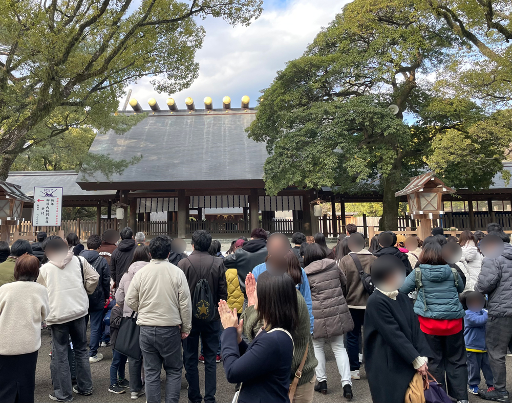 伊勢神宮に次ぐ格式の高い神社で、境内は初詣の参拝者で賑わっていました。