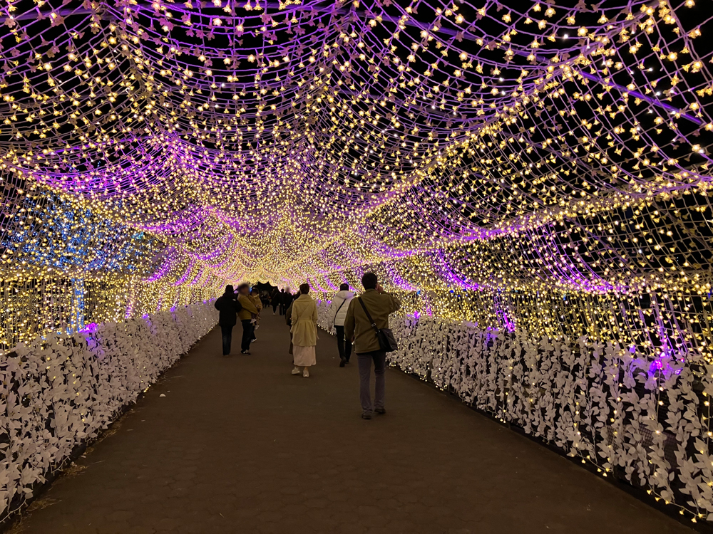 スケール感のあるイルミネーションや色とりどりの光の演出を楽しみながら、ゆっくりと会場内を散策。