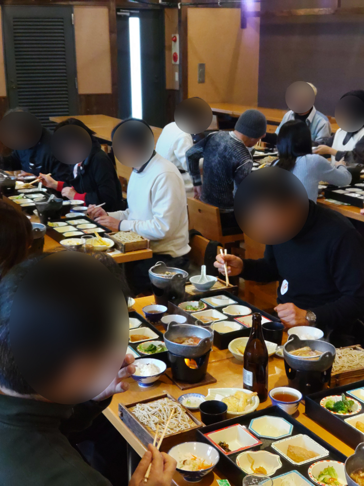 昼食は、石臼挽きのそば御膳」を堪能。「お蕎麦美味しい!」の声が各テーブルから聞こえてくる、そして珍しい「リンゴの天ぷら」も大好評でした。