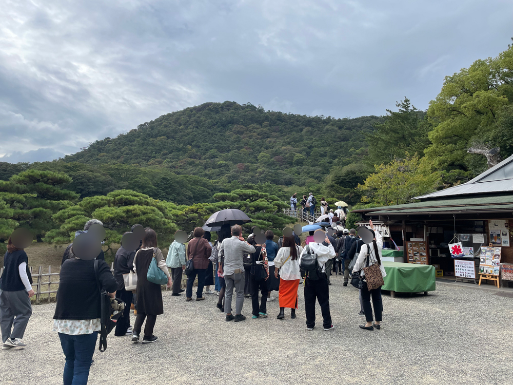 到着後Bコースのお客様は吹上亭で本場讃岐うどんをはじめ讃岐の郷土料理をお召し上がり頂いてからAコースと合流し、案内人の方の説明を聞きながら園内を鑑賞しました。