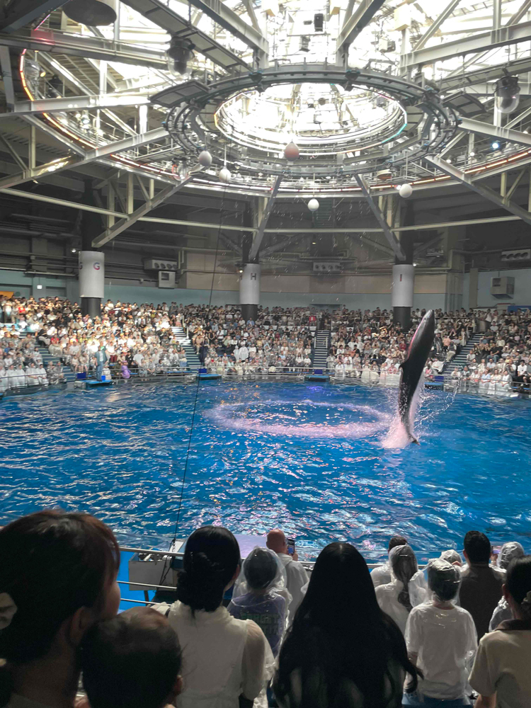 ツアーの締めくくりは、アクアパーク名物のイルカパフォーマンスです。