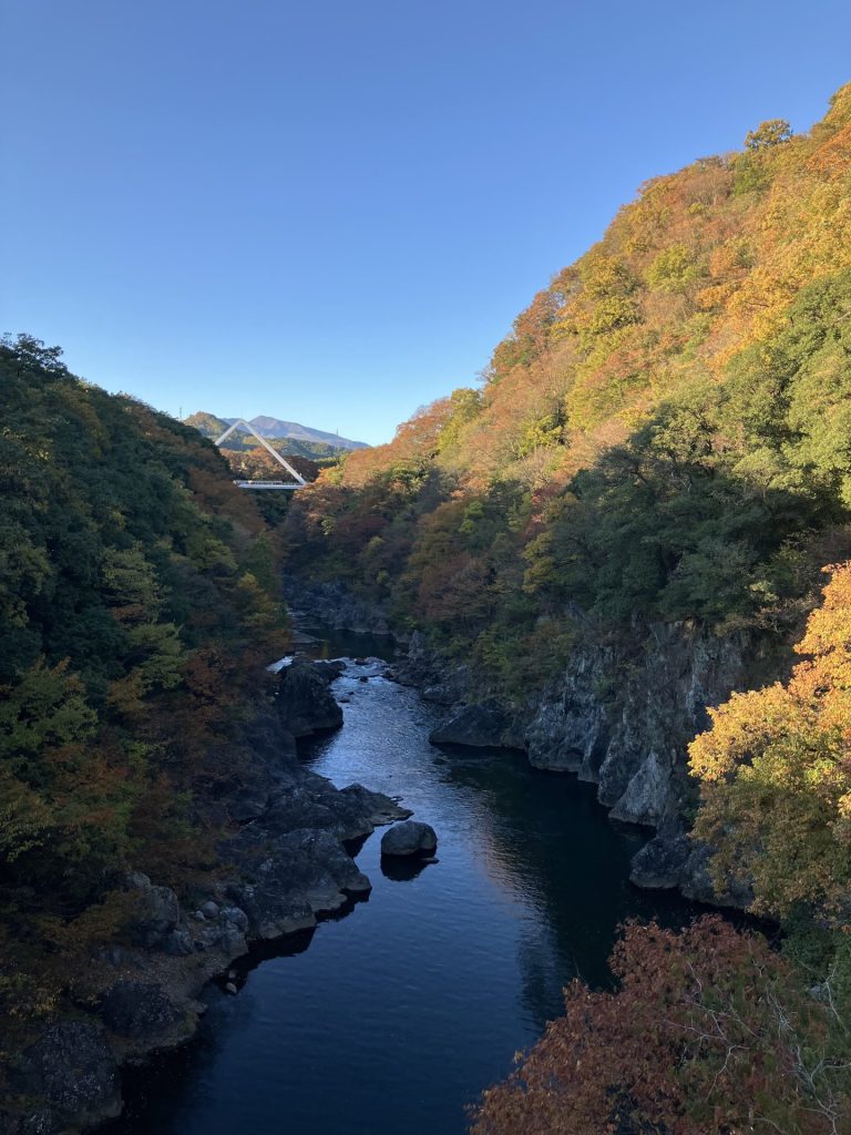 青空が広がる秋晴れの中、新宿からわたらせ渓谷に向けて出発!