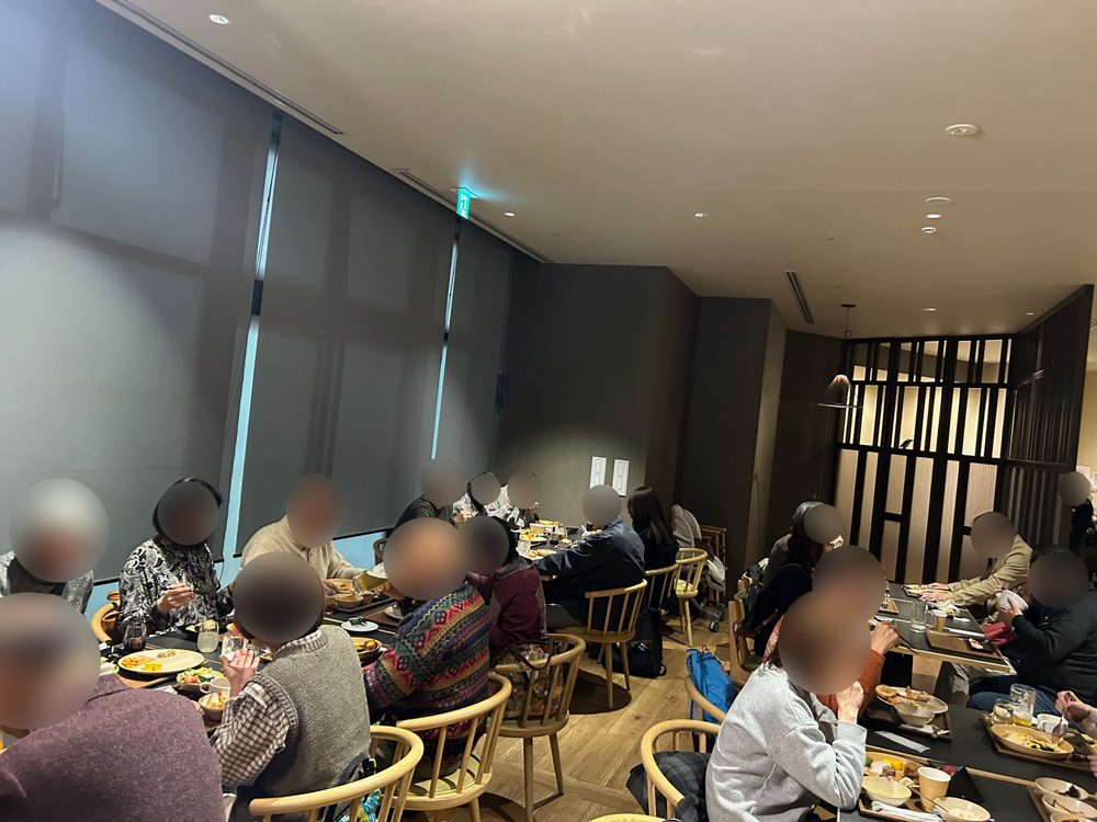 庭園に面した開放的なレストランで、和洋中約50〜60種類のお料理を好きなだけお楽しみ頂き、お酒も飲み放題の為仲が深まるには時間はかかりませんでした。