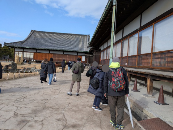 二条城〈二の丸御殿〉うぐいす張りの廊下の仕組みなど庭園からご覧頂きました。