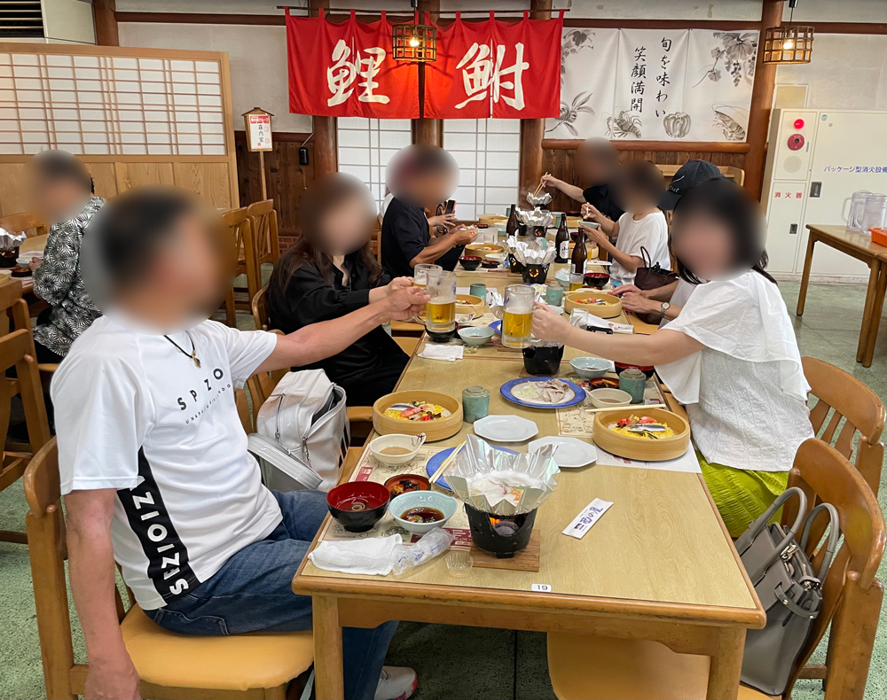 昼食は西の屋湯の郷店で「岡山祭り寿司と豚しゃぶ膳」すいか・メロンの食べ放題です。
