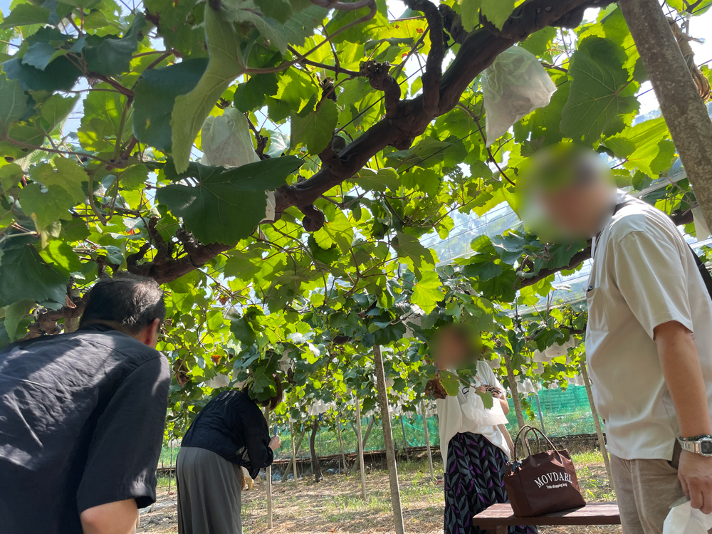 食後は美作農園さんに移動してグループに分かれてぶどう狩りです!