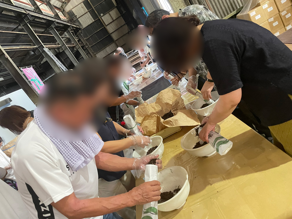 最後は″お茶の芳香園″でほうじ茶の詰め放題体験です。