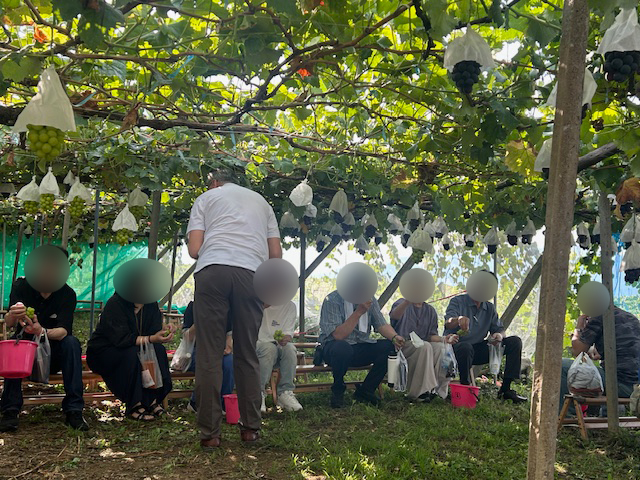 グループの班長さんを筆頭に皆さまで美味しそうなシャインマスカットを選びご自分で切って口の中に放り込んでいました!