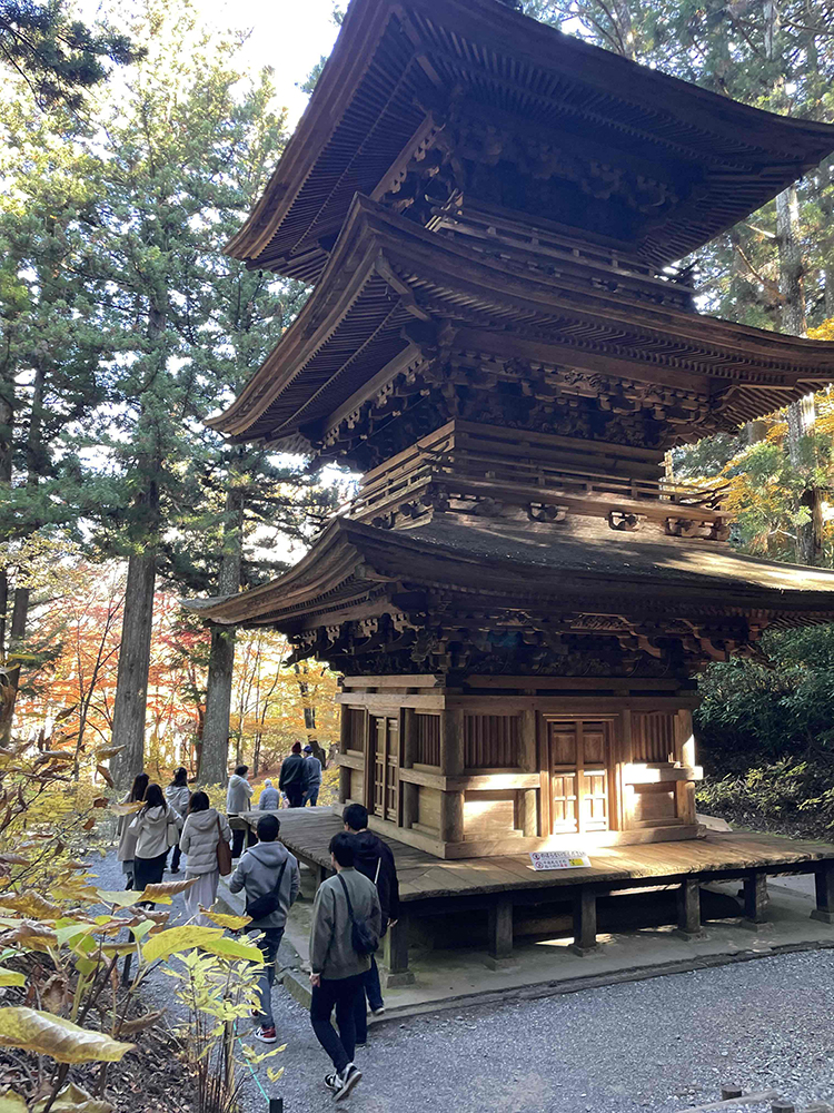 境内では赤く色づいた紅葉や三重塔など、風情ある景色を楽しみながらグループで参拝しました。