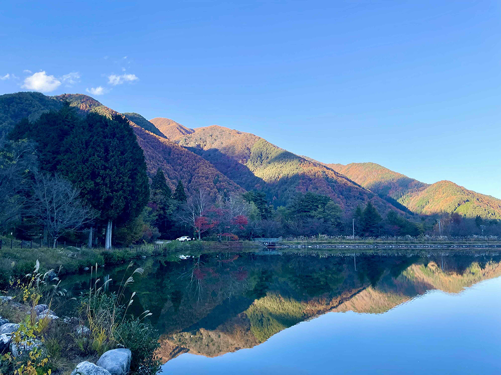 「駒ヶ池」では水面に山が映りこみ、まるで鏡のようでした。