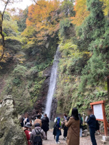 本日も、好天に恵まれて、皆様お時間通りにご集合いただき 名古屋駅を出発致しました。 車内で和やかにトークタイムを楽しみながら、 養老公園を目指します 紅葉🍁真っ盛りの養老公園に到着し、3班に分かれて、 養老の滝を目指します。 なかなか往路はハードですが、皆様励ましあって頑張りました。