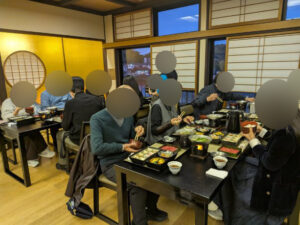 本日は男性12名様、女性11名様の合計23名様の方が婚活ツアーにご参加くださいました。 全員の方と顔合わせトークタイムを取りながら比叡山の麓にある日吉大社に向かいました。 日吉大社では神職の方に歴史や境内の案内をしていただき、その後グループに分かれて広い境内を参拝・散策をしていただきました。 お猿が日吉大社の神の使いという事でかわいいお猿さんも見る事ができました。