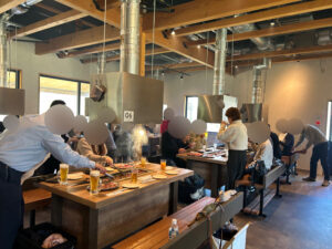 本日は男性18名様、女性18名様の合計36名様でのご参加です♪ プロフィールカードを使って車内で全員の異性の方と顔見知りになって頂き、まずは「スミテラス 森のヴィレッジ水沼」へ 渡良瀬川を望む山と川に囲まれた敷地面積約34,000㎡の絶好のロケーション!地元の牛や豚、野菜などが味わえる全天候型BBQレストランで楽しくワイワイ過ごしました。 隣接しているカフェに足を運ぶグループもいらっしゃいました。